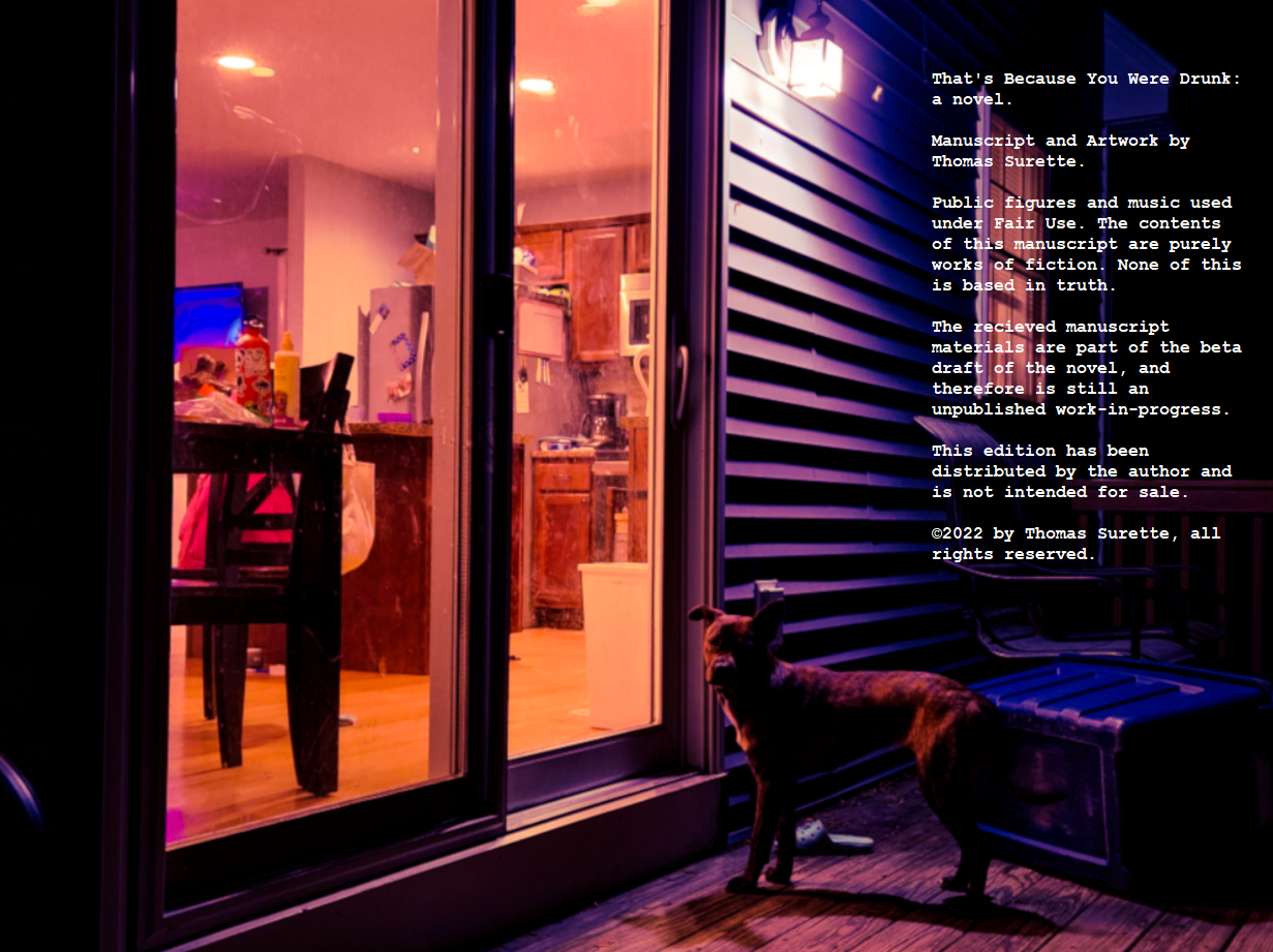 Thomas Surette a recent MFA graduate and lives with his family in southern New Hampshire. He was born in 1984. That’s Because You Were Drunk is his first novel.